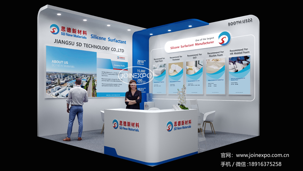 原料展区包括异氰酸酯、聚醚多元醇、聚酯多元醇等各种多元醇及含活性氢低聚物,同时展示发泡剂、催化剂、阻燃剂、泡沫稳定剂等关键助剂。